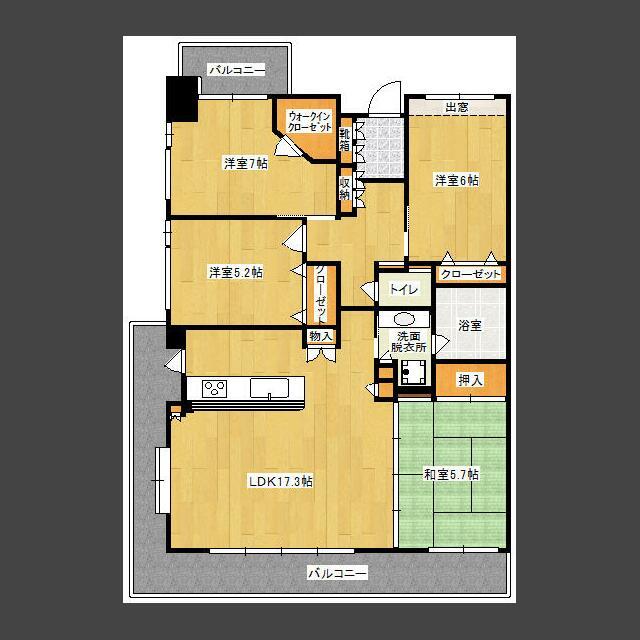 | 間取り | 4LDK(和 5.7 洋 7・6・5.2 LDK 17.3) | ||